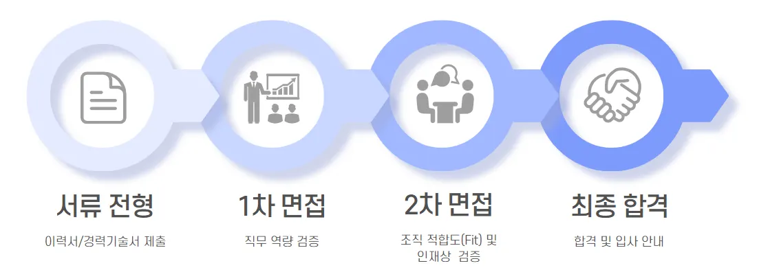 웨이브릿지의 채용 절차와 각 단계 별 진행 내용을 소개합니다.